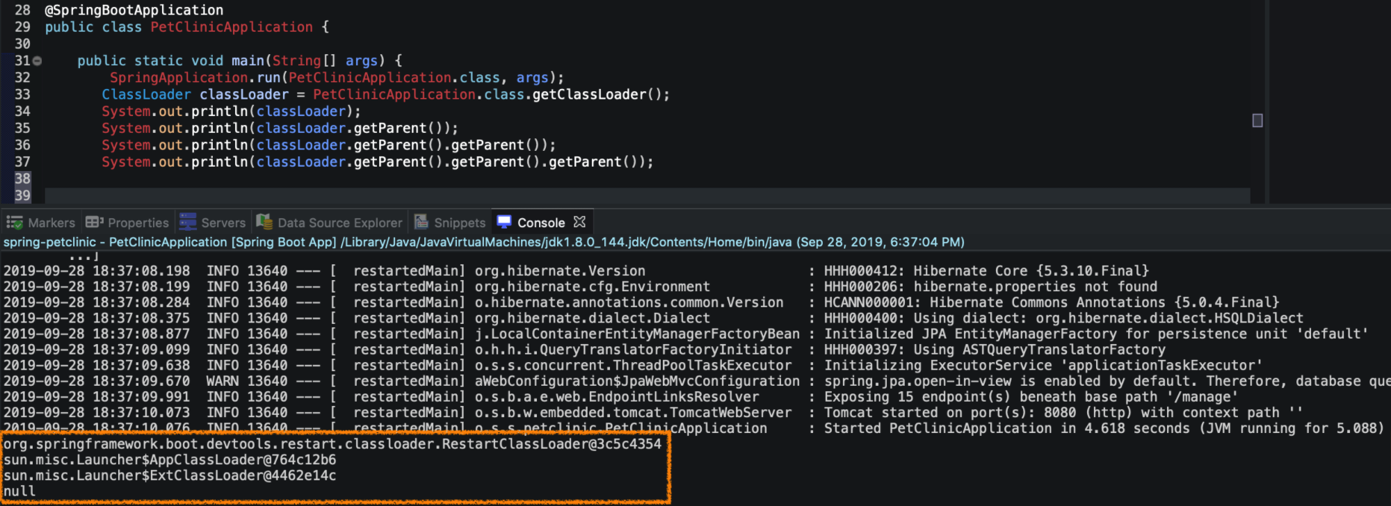 org.springframework.boot.devtools.restart.classloader.RestartClassLoader@3c5c4354