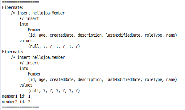 - IDENTITY 전략은 em.persist() 시점에 즉시 INSERT SQL 실행하고 DB에서 식별자를 조회