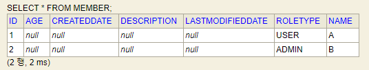 - JPA를 사용해서 테이블과 매핑할 클래스는 @Entity 필수