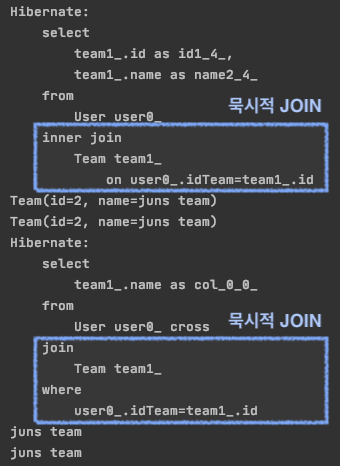 - SQL을 보면 유저 뿐만 아니라 팀(T.*)도 함께 SELECT 한다. (즉시로딩 ?)