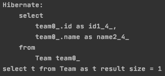 실행 시, 한 번의 조회 쿼리와 더불어 팀의 수 만큼 추가적인 쿼리가 발생한 것을 볼 수 있다. (N + 1)