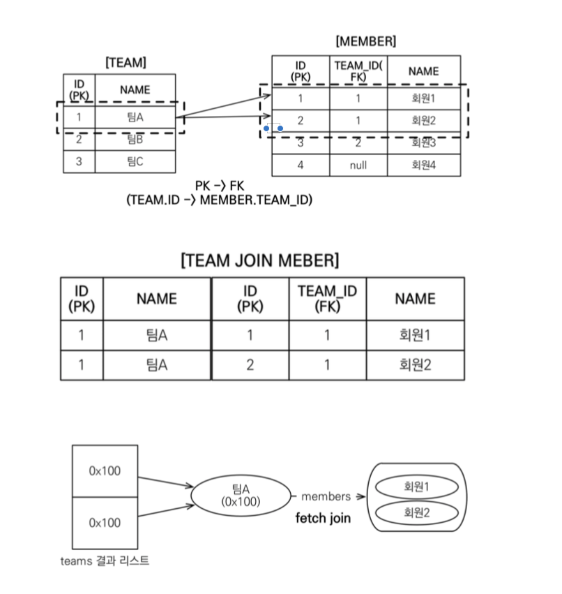 - SQL 조인 종류가 아닌 JPQL에서 성능 최적화를 위해 제공하는 기능이다.