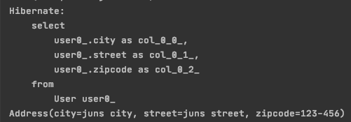 Address resultAddress = entityManager.createQuery("select u.address from User as u", Address.class).getSingleResult();