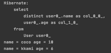 List<Object[]> resultList = entityManager.createQuery("select distinct u.name, u.age from User as u").getResultList();