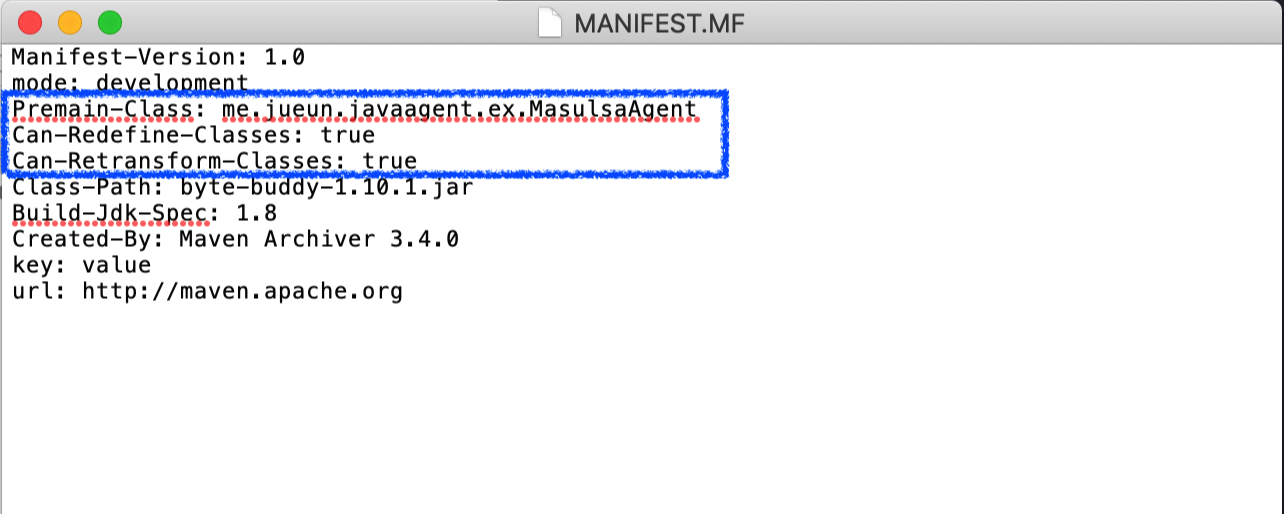 <Premain-Class>me.jueun.javaagent.ex.MasulsaAgent</Premain-Class>