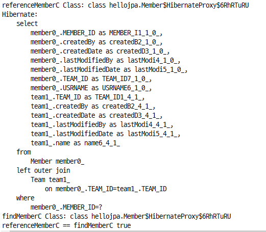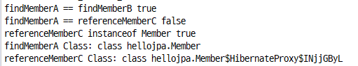 System.out.println( "findMemberA == findMemberB " + ( findMemberA.getClass() == findMemberB.getClass() ) );