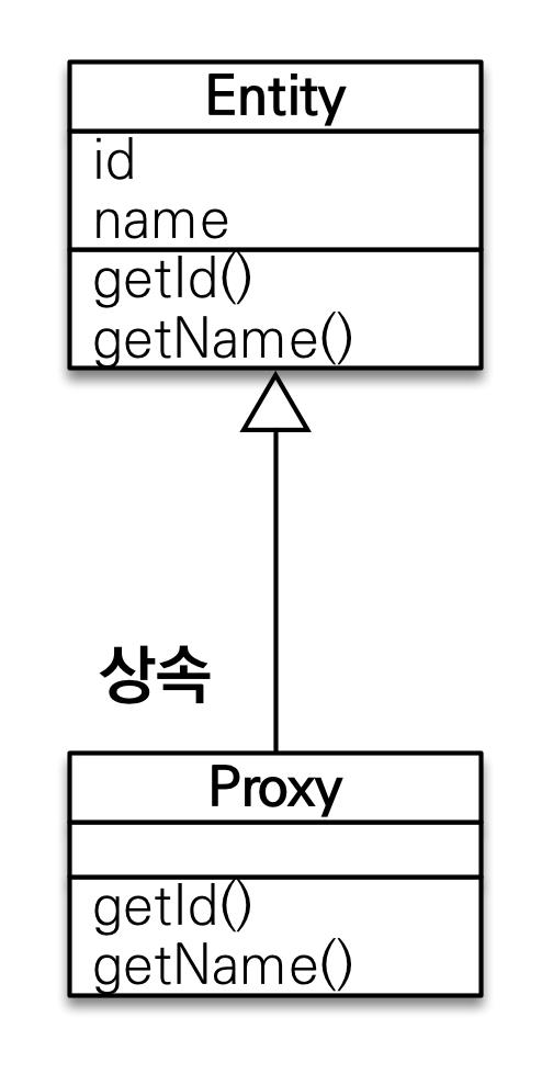 - 프록시 객체는 실제 클래스 타입이 아닌 원본 엔티티를 상속 받아 생성한 클래스 타입이다. 따라서 타입 체크 시 == 비교가 아닌 instance of 사용해야한다.