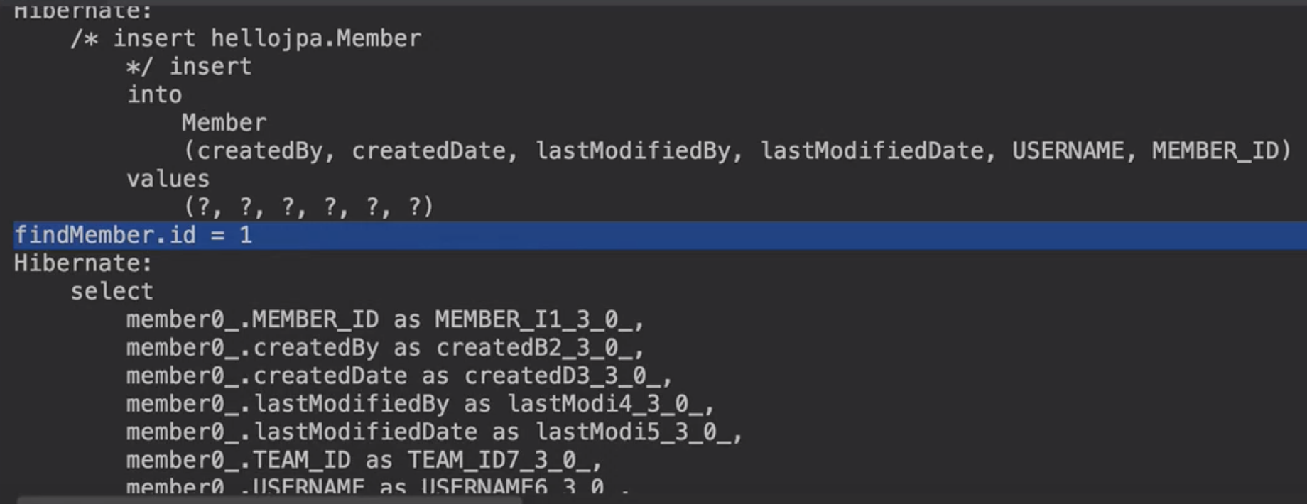 System.out.println( "findMemberA Class: " + ( findMemberA.getClass() ) );