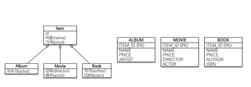 • TABLE_PER_CLASS: 구현 클래스마다 테이블 전략